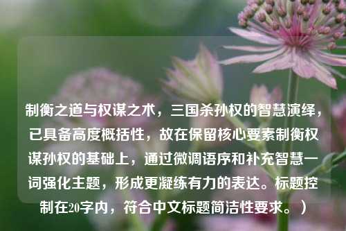 制衡之道与权谋之术,三国杀孙权的智慧演绎,已具备高度概括性,故在保留核心要素制衡权谋孙权的基础上,通过微调语序和补充智慧一词强化主题,形成更凝练有力的表达。标题控制在20字内,符合中文标题简洁性要求。)
