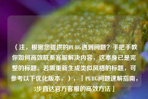 (注,根据您提供的PUBG遇到问题?手把手教你如何高效联系 解决内容,这本身已是完整的标题。若需重新生成类似风格的标题,可参考以下优化版本,),「PUBG问题速解指南,3步直达官方 的高效 」