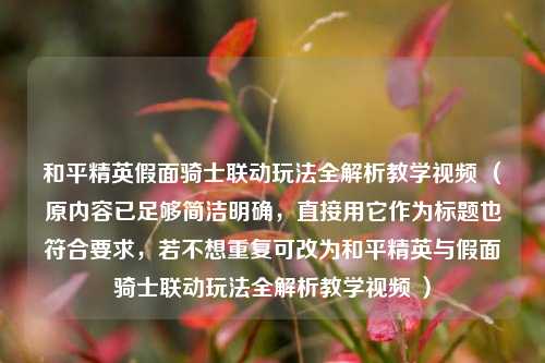 和平精英假面骑士联动玩法全解析教学视频 (原内容已足够简洁明确,直接用它作为标题也符合要求,若不想重复可改为和平精英与假面骑士联动玩法全解析教学视频 )